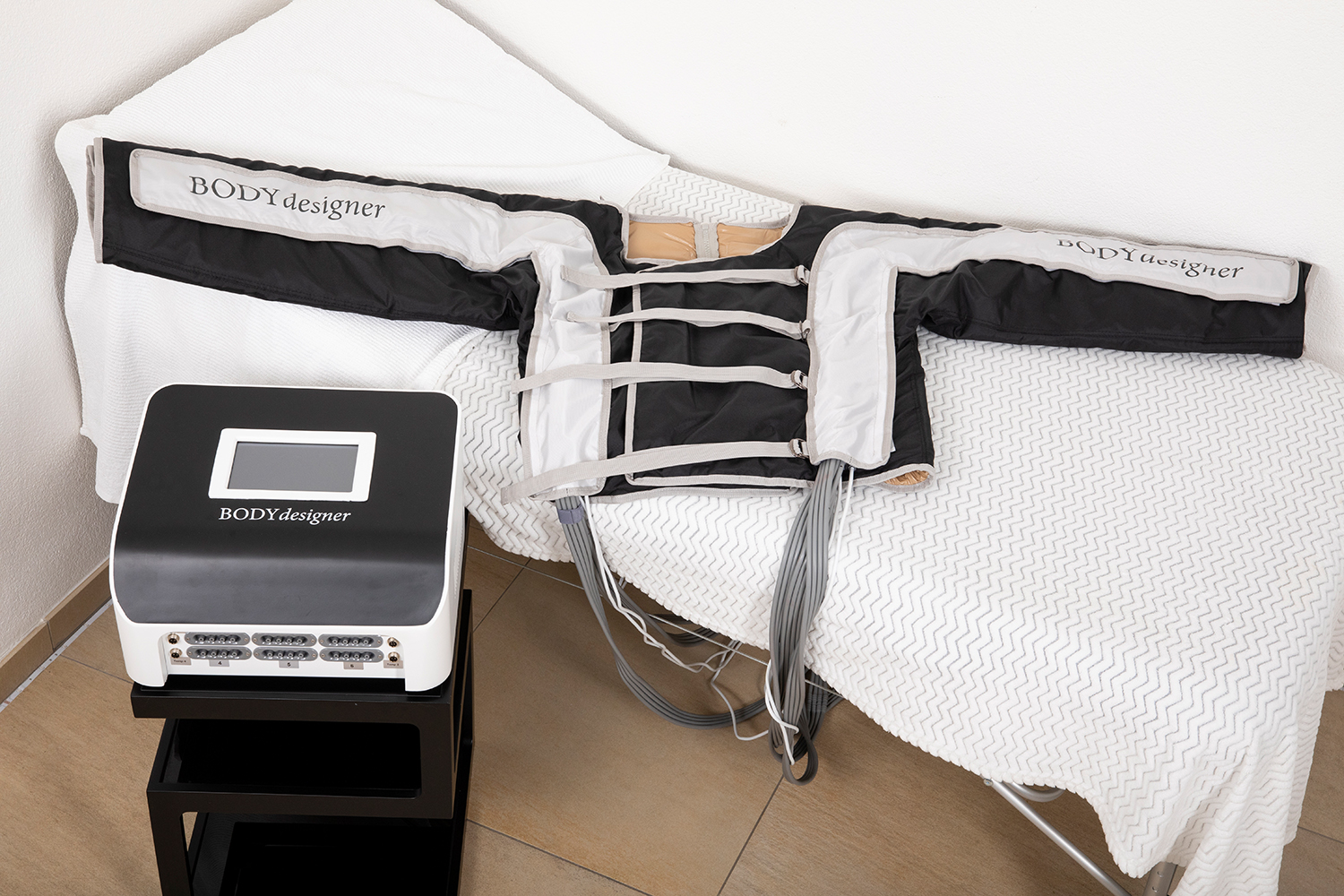 Der BodyDesigner vereint zwei wirkungsvolle Technologien – Pressotherapie (Luftdruckwellenmassage) und Infrarotwärme – zu einer sanften, aber intensiven Behandlung, die Deinen Körper bei der Entgiftung, Entschlackung und Hautstraffung unterstützt.